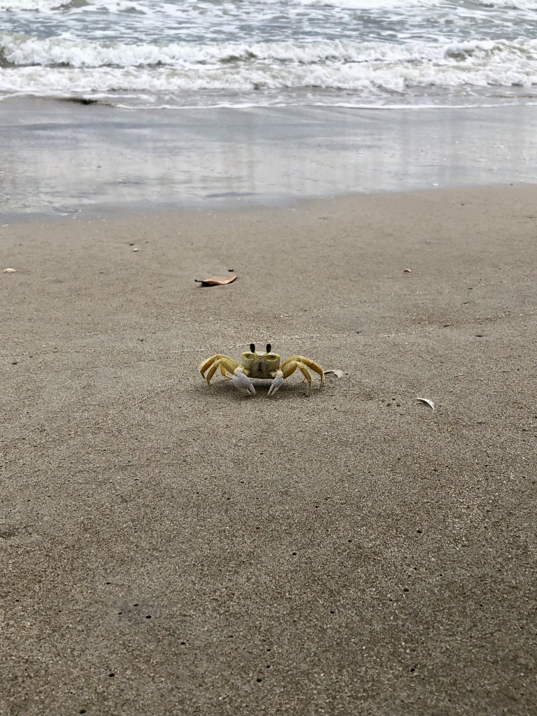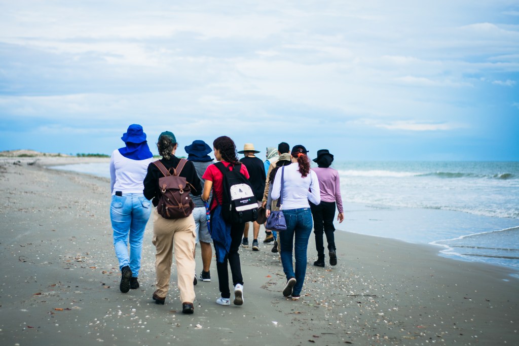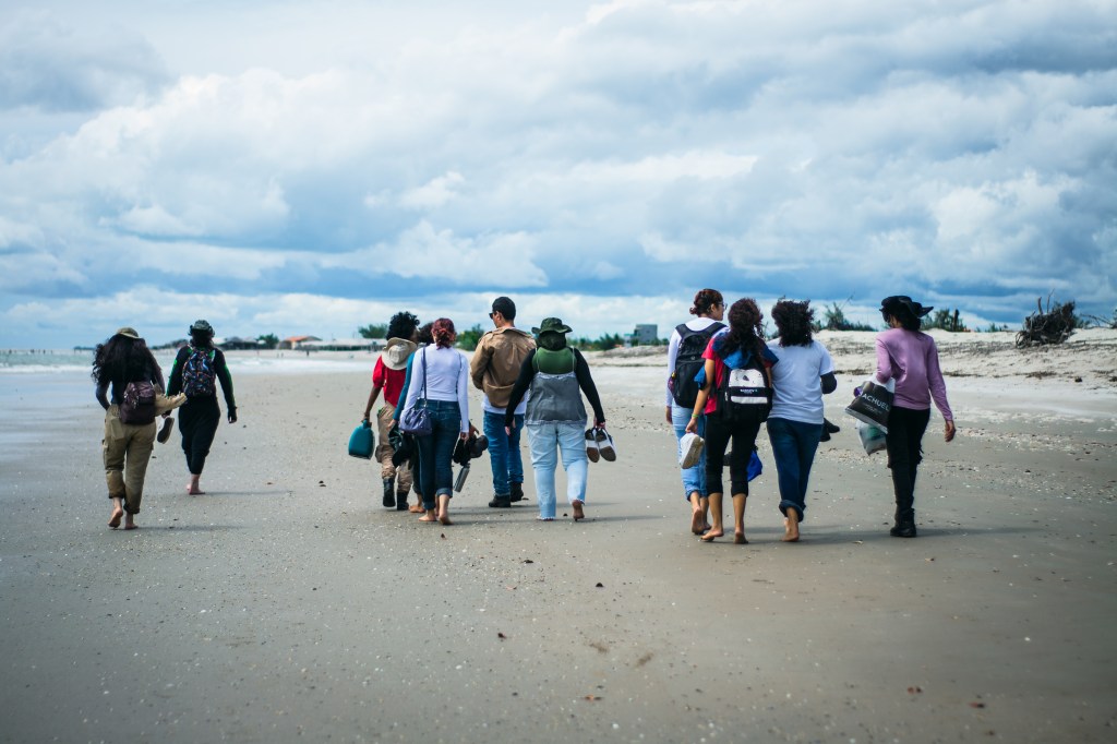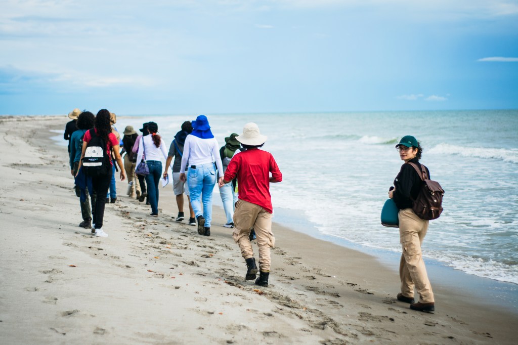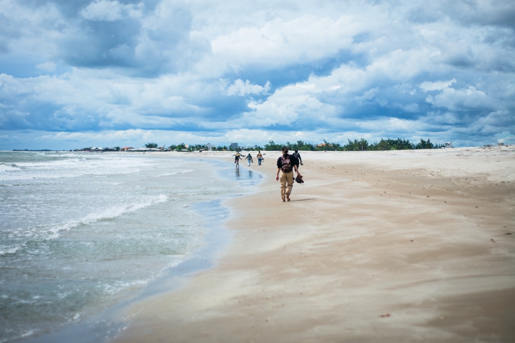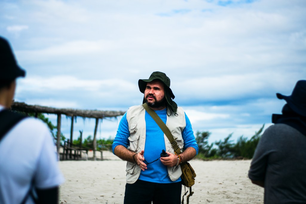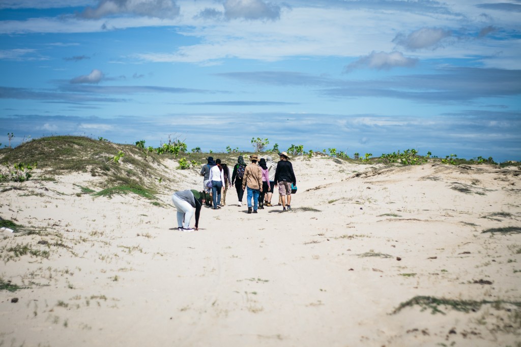 Seguindo em direção ao destino, a equipe percorreu 1,7km a pé pela praia, deslumbrando-se com a incomparável beleza do litoral. Durante o trajeto, avistaram aves típicas das dunas, como o carcará, o quero-quero e a coruja buraqueira. Além disso, encontraram um siri e baiacus mortos pelo caminho, assim como vestígios da pesca na região, como pedaços de madeira e redes pesqueiras. Infelizmente, também se depararam com uma quantidade significativa de lixo deixado pela maré na praia.