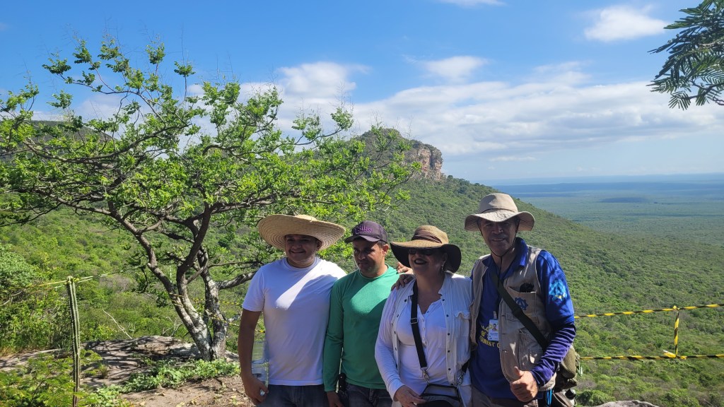 No Mirante Pedra da Mesa, a mais de 600m de altitude, seguimos a Lei 8.623, mantendo uma distância segura do abismo. O Sítio Arqueológico Família Calixto, batizado pela Professora Elaine, revelou pinturas rupestres únicas, mas exigiu precaução devido à presença de carrapatos e piolhos de mocó.