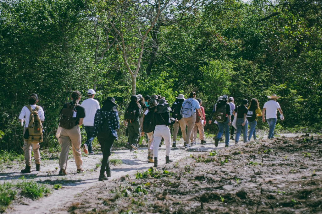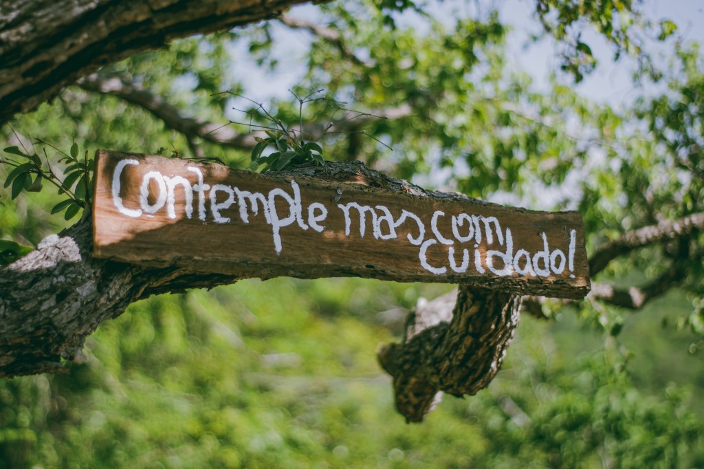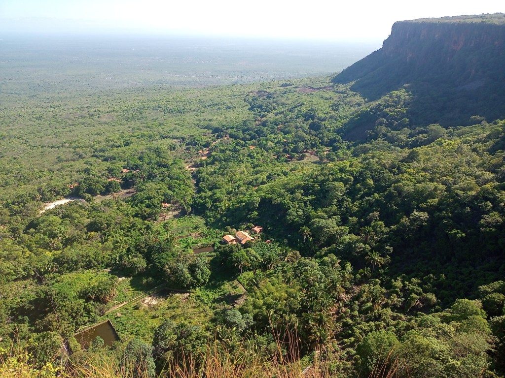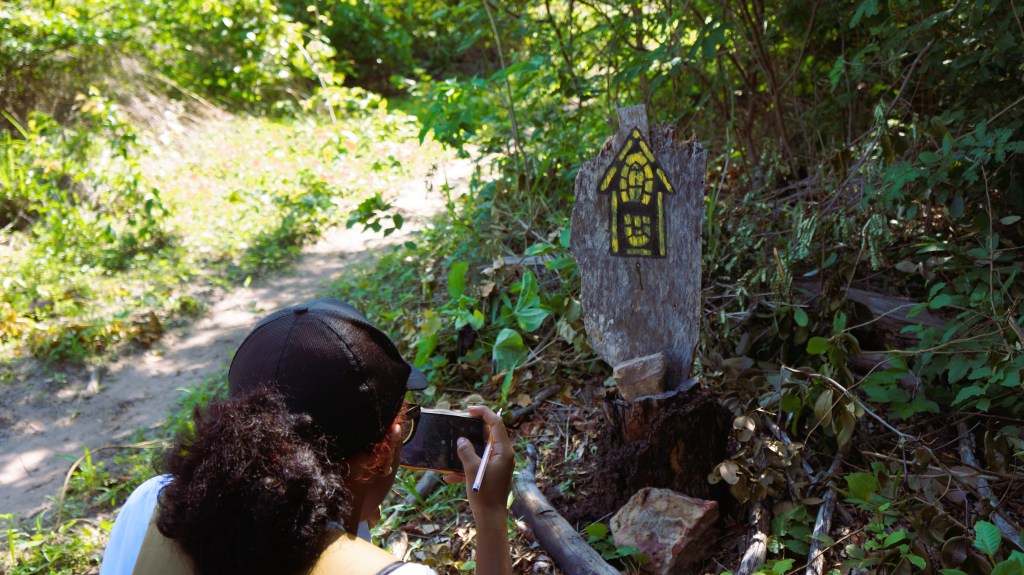 Árvores como cajuí, pau d’arco, aroeira branca e faveira compõem a rica vegetação local. Placas informativas, confeccionadas pela própria comunidade, guiavam nossa jornada, aludindo à Rede Brasileira de Trilhas aprovadas pelo ICMBIO.