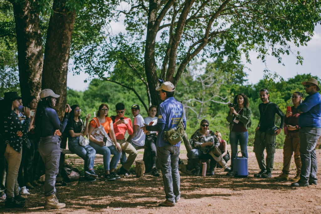 Nossa equipe fez um percurso de 2 km até o mirante, um circuito que exigiu atenção para capturar todos os detalhes do caminho. Partimos em direção aos sítios arqueológicos, acompanhados por guias, explorando uma área de transição entre a caatinga e o cerrado.