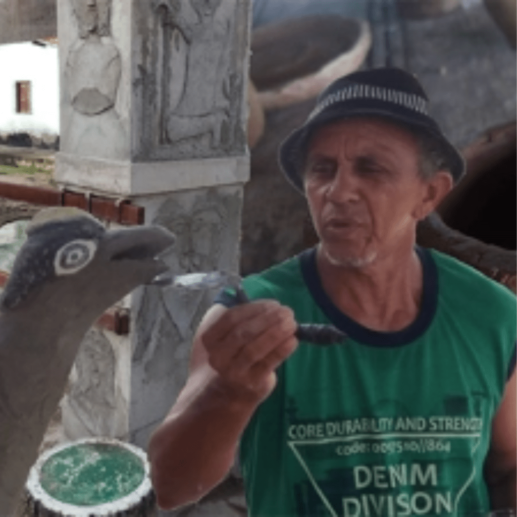 O artista Raimundo Nonato Carvalho Silva já aos 8 anos de idade mostrou sua visão artística montando a miniatura de um Petromax (lampião a querosene) com tampinhas de garrafa. A impressionar assim, familiares e vizinhos com sua desenvoltura e aptidão artística. Assim como todo brasileiro, desde pequeno, por iniciativa própria começou a gostar de música e de esportes, confeccionava violões de latinha de doce com talos de carnaúba, bolinhas de saco ou bolinhas de meia, ainda muito jovem já demonstrava aspecto de liderança entre os irmãos e primos. Na sua juventude aprendeu com o seu pai a trabalhar com argila na fabricação de telhas e tijolos, descobriu que poderia então fazer com a argila outras modelagens, além de telha, tijolo e, uma das primeiras peças de modelagem criadas por ele foi o protótipo de uma guitarra. A obra que lhe abriu o caminho para o mundo artístico, a qual ele presenteou um primo seminarista, este que lhe deu o nome artístico de “Di Carvalhe”. Durante algum tempo, criou peças de utensílios de casa, cozinha e brinquedos. Depois do trabalho com argila, Di Carvalhe começou a talhar e esculpir em madeira, fez vários trabalhos em talha e brinquedos. Certo tempo depois, por conta de uma vida em situação de risco social, observando um artista escultor profissional trabalhando na reconstrução do altar da Igreja de Nossa Senhora dos Remédios, começou a trabalhar com massa de cimento devido o baixo custo da matéria prima e matérias recicláveis, fazendo os trabalhos que já sabia fazer e acrescentando, por orientação daquele artista profissional, placas, molduras e painéis de tamanho grande em paredes. Di Carvalhe, é membro da Academia Buritiense de Artes Ciência e Cultura – ABACC Arnaldo Escórcio Atahyde, já realizou duas exposições arte independentes, uma destas em colaboração com o artista “erasmudoporto” intitulada I Sarau Artístico Di Carvalhe/erasmudoporto, ministrou dois cursos de escultura e modelagem para a ABACC e novamente com “erasmudoporto” fizeram o II Sarau Artístico Di Carvalhe/erasmudoporto para o fim de 2017. O artista tem como projeto futuro, transformar sua Casa-Obra em um museu ao céu aberto da cidade de Buriti dos Lopes, onde crianças, jovens, estudantes, pesquisadores e comunidade em geral possa visitar e passar momentos de contato com a arte… consolidando assim sua obra como um patrimônio da cidade.